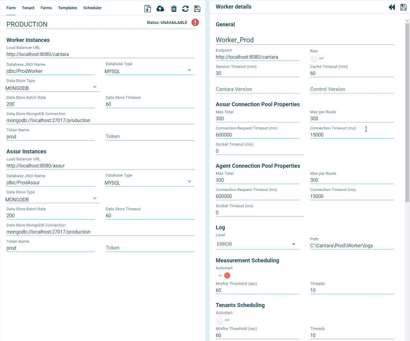 | Scheduler Clustered | OFF | Must be set to ON if there is more than one worker instance in the farm running the job scheduler. |