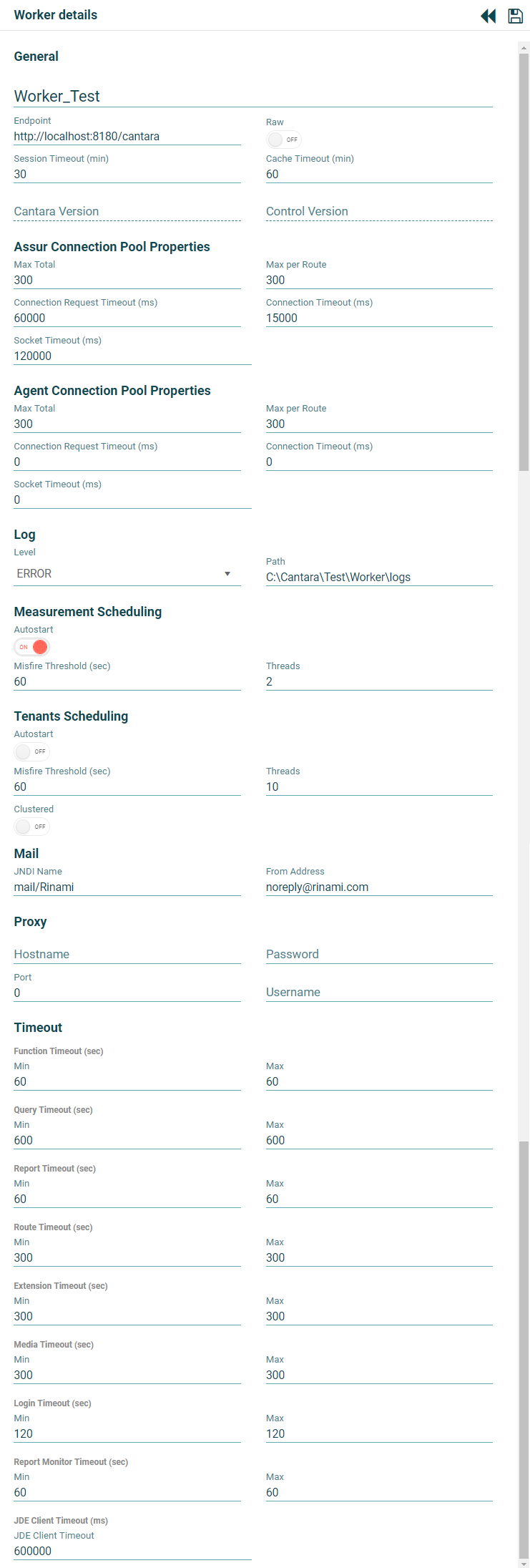 | Log Path | C:\Cantara\Test\Worker\logs | The folder to store the Worker log file |