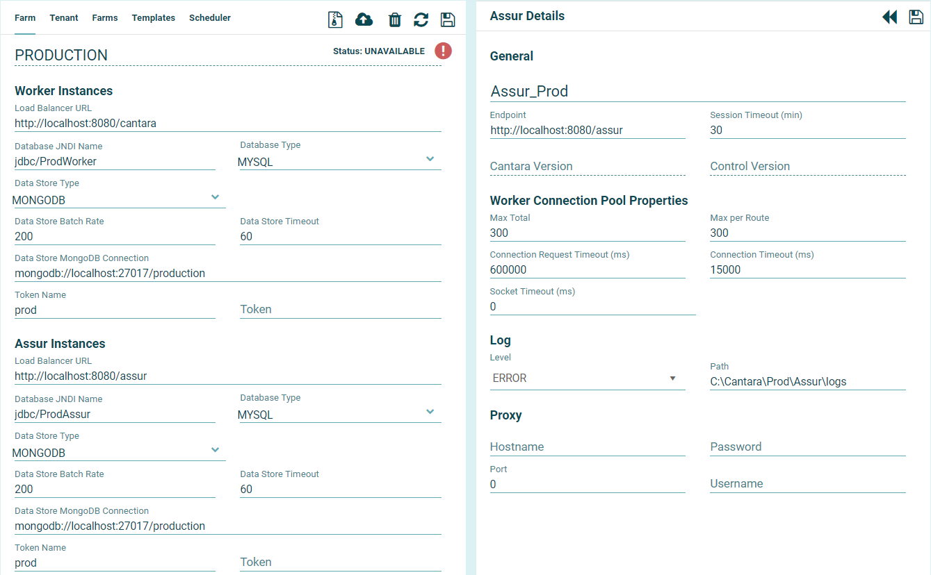 | Max Total | 300 | The maximum number of connections from the Assur server to the farm Worker instances |