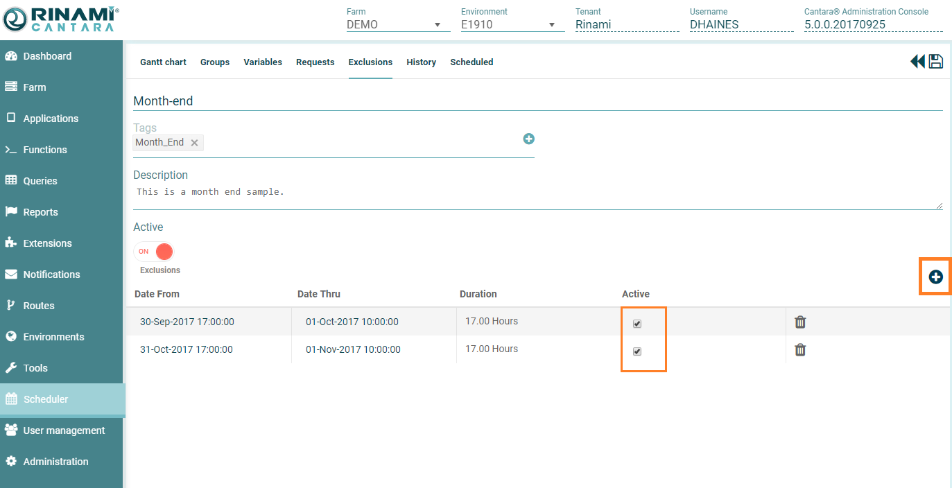 Check the Active option to ensure that the exclusion periods are applied. You can deactivate an exclusion set if required.