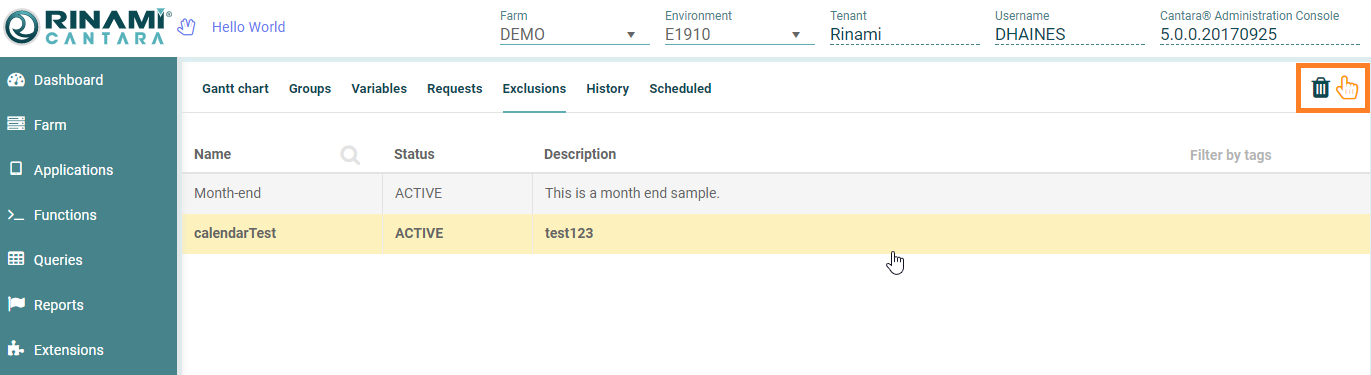 To delete an exclusion set
