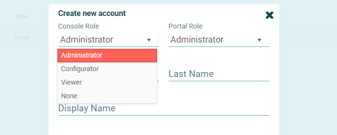 Select the appropriate roles for the new user. NOTE the Console Role cannot be changed for a user account once it has been created.