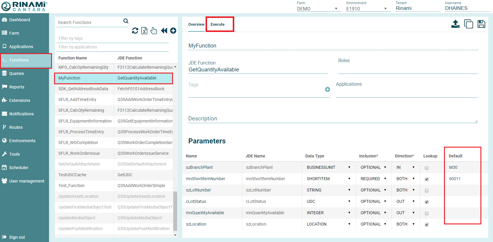 Prior to executing the function ensure you are in the correct Environment as seen at the top of the screen.