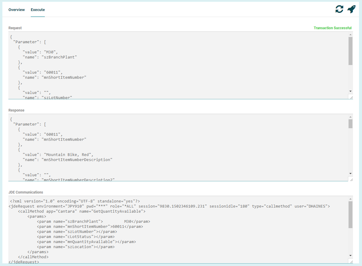 Function Response: The data that the JD Edwards server returns.