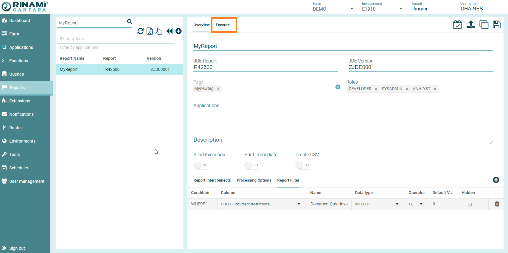 Populate the default value fields with the processing options, report interconnects or filter criteria you wish to submit.