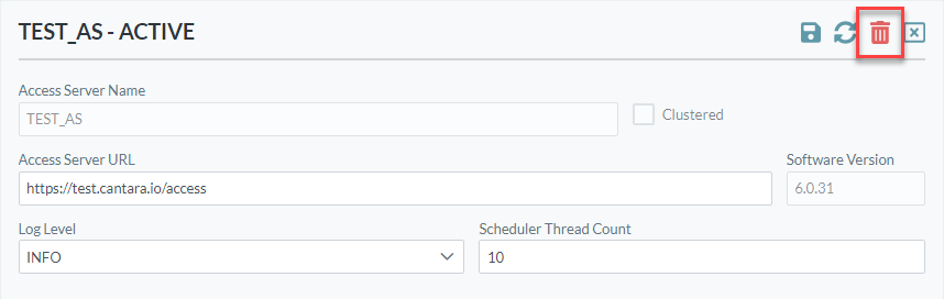- Clustered: This is an information field indicating whether the Access Server URL represents multiple access servers deployed within a containerized environment. This field can only be modified by editing the cantara.clustered.instance property - refer to Creating the Access Server Properties File for further information.