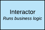 - The Interactor takes the request object and delegates the work to a Worker.