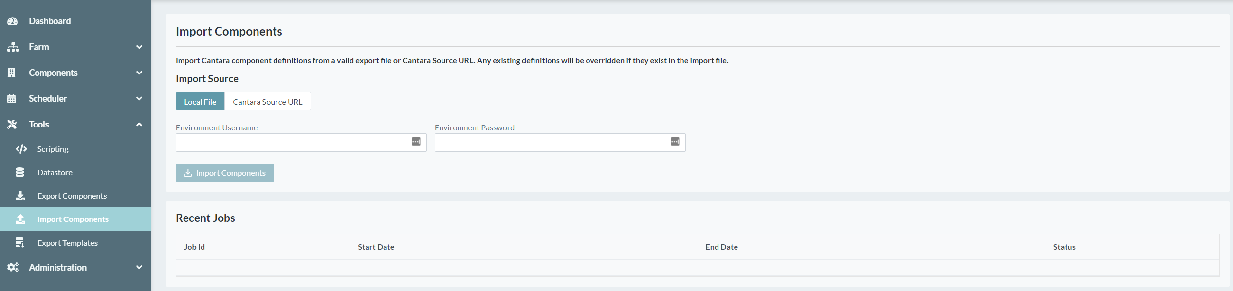 Cantara Source URL Import components from a Cantara server location.