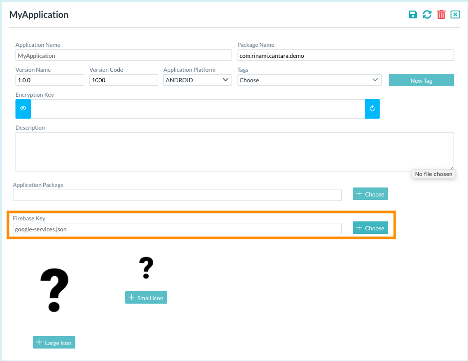 To configure an Application Firebase Key