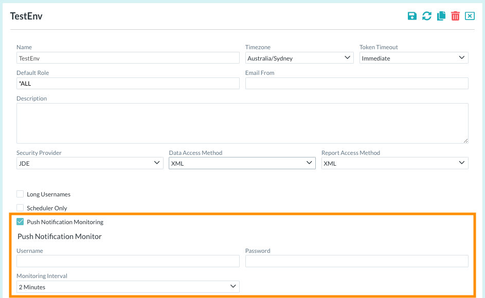 Enter the required Push Notification Name. This name will be used when searching the JDE push notifications messages table for entries containing a matching application description.