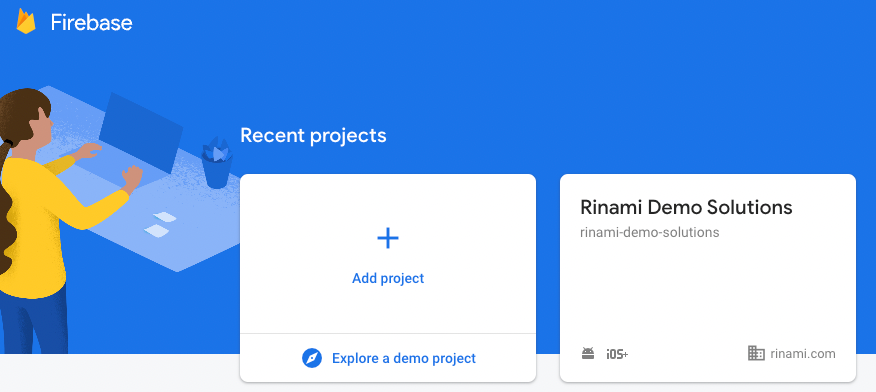 Once you are logged into the Firebase website, you can select an existing Firebase project, or create a new one.
