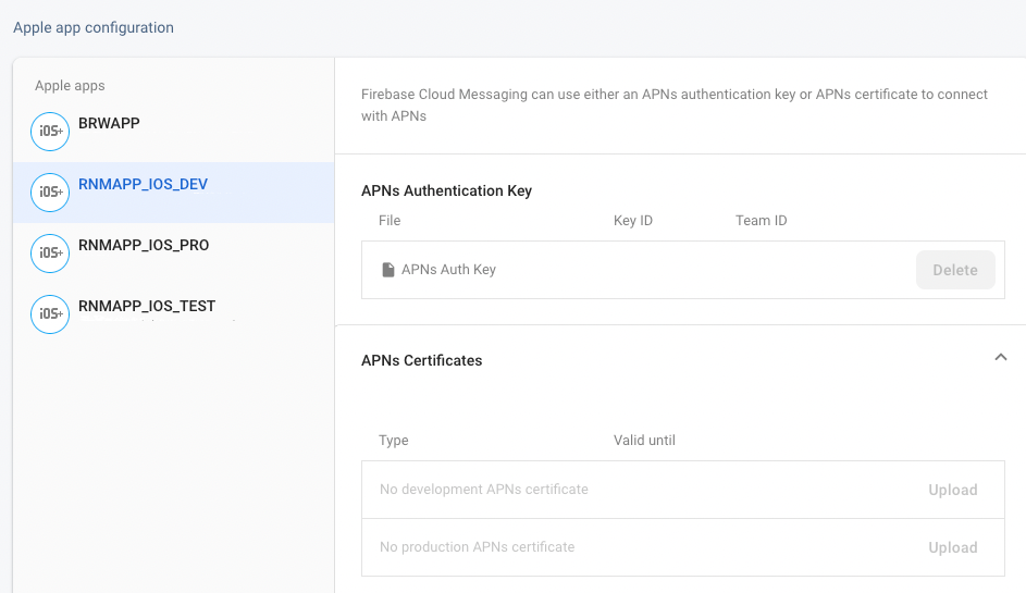 For iOS notifications, Firebase needs to be configured with additional information so that push notifications can be forwarded to Apple.
