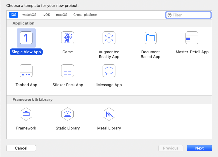 - Create a new Xcode project and select Single View App: