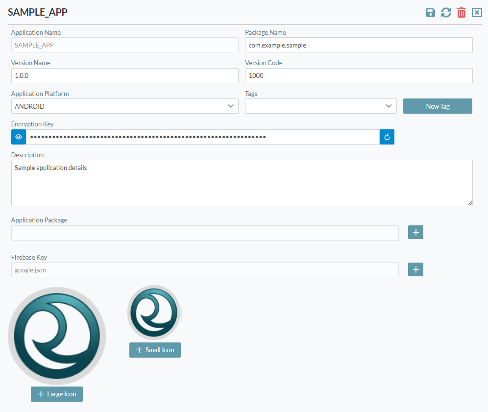 - Small/Large Icon: Images that represent your application (optional).