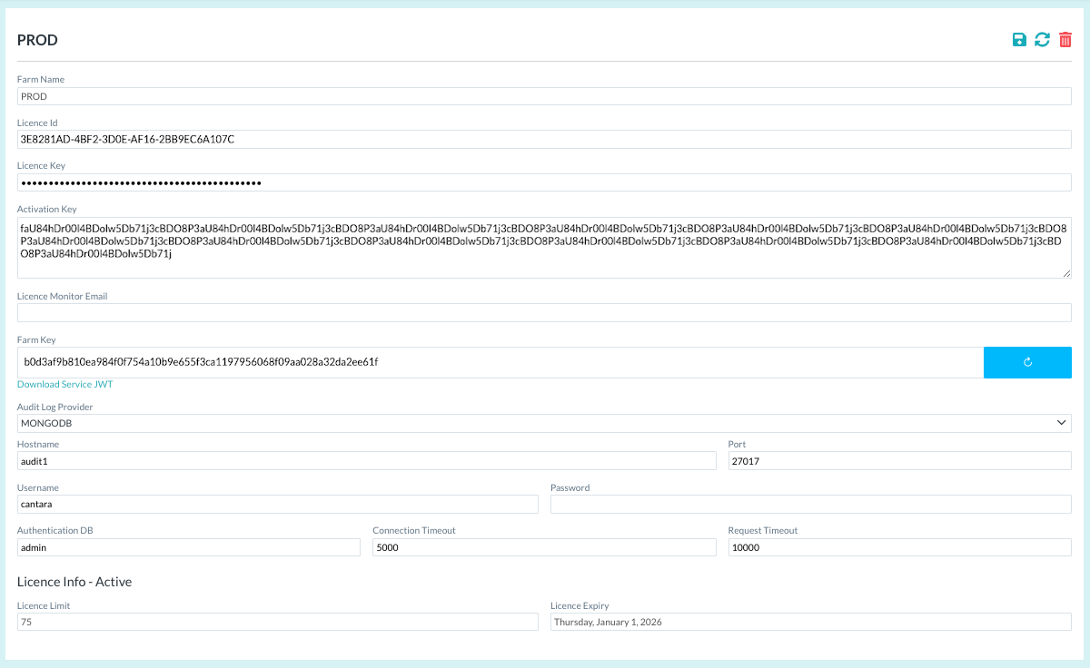 - If your deployment includes a Cantara Agent server, click on the Cantara Agent node of the navigation panel.