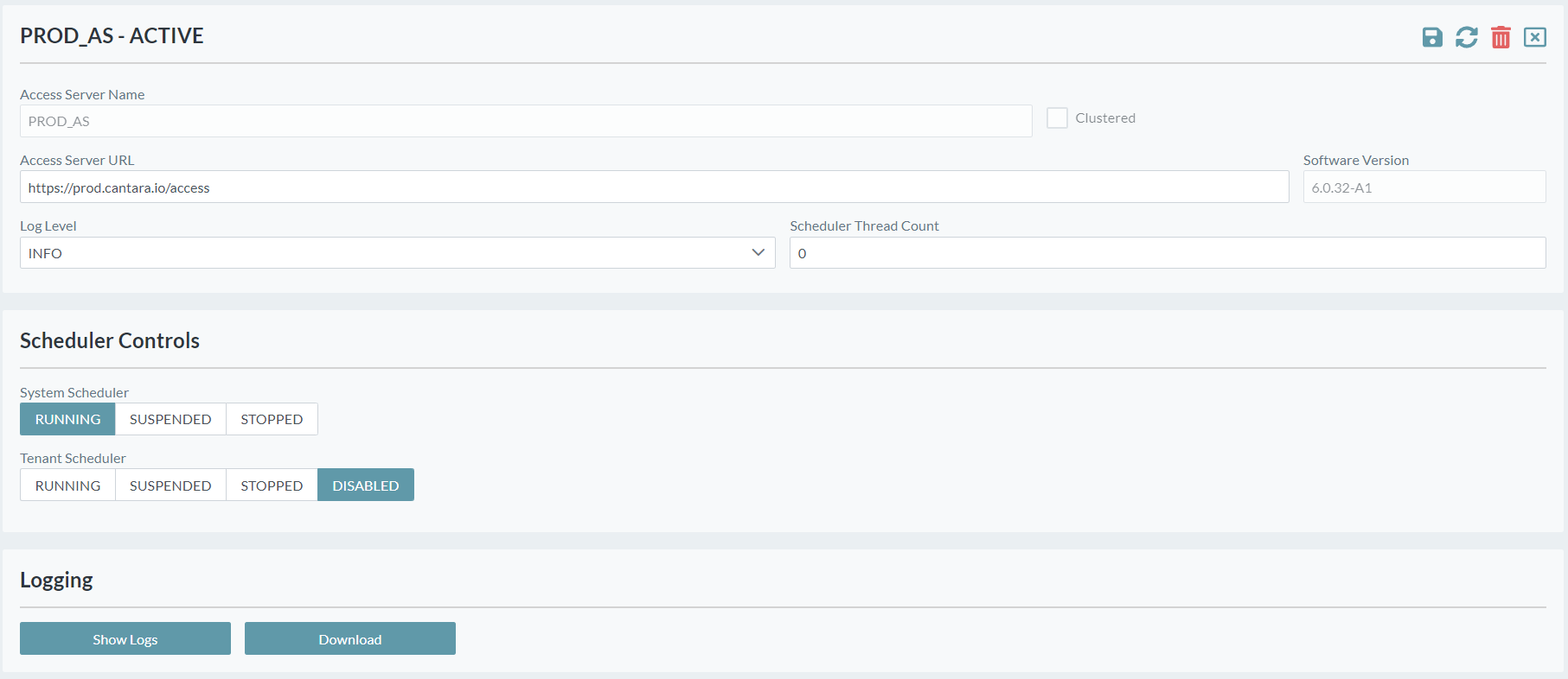 - Select the new Access Server. The Access Server Scheduler Controls are displayed.