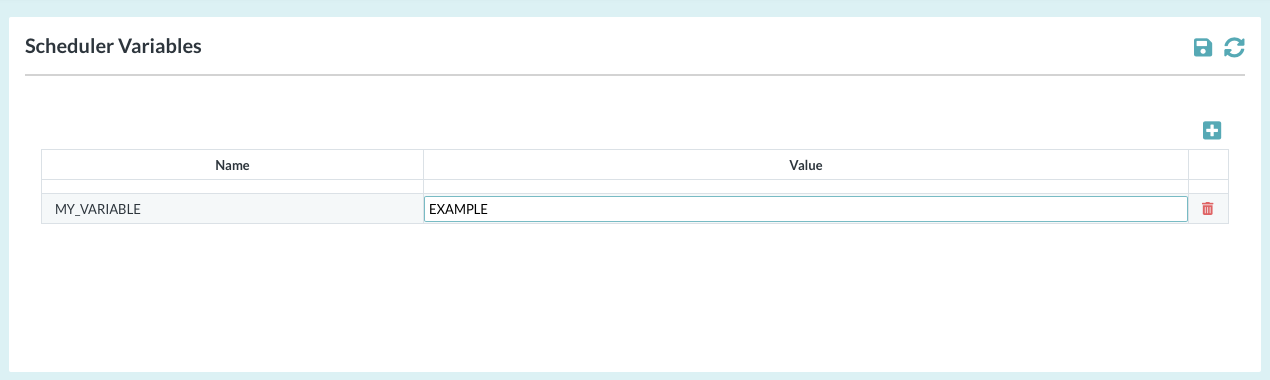 Open the Scheduler menu group in the navigation panel and select the Variables node.