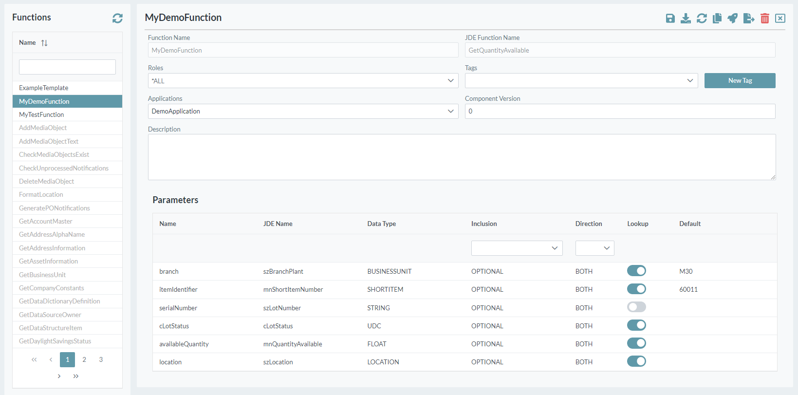 Function Response: The data that the JDE server returns.