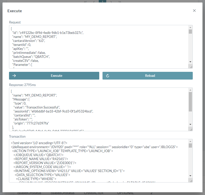 JDE Transaction: The data that is being transmitted from Cantara Access Server and the JDE server.