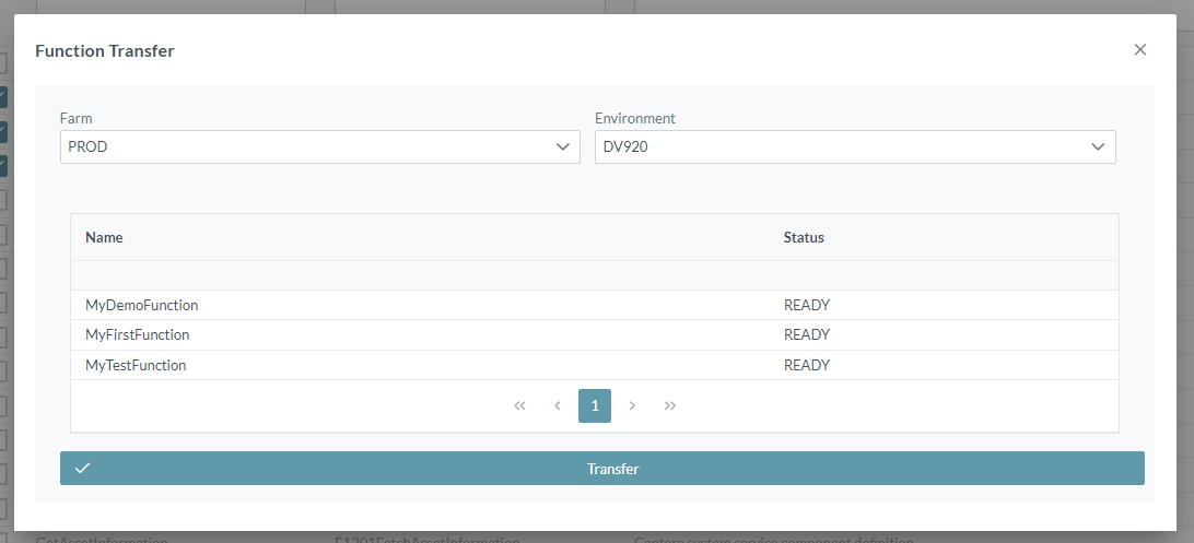- Choose one or more functions to be transferred, using the checkboxes at the left side of the pane.