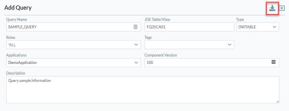 To create multiple queries for the same JDE table or view, click the Duplicate Query button: