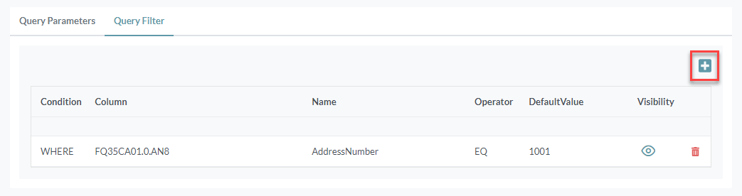 - On the query details screen, select the Query Filter tab and click the Add button to add a filter.