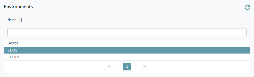- Select the Environments node. A list of the configured environments is displayed: