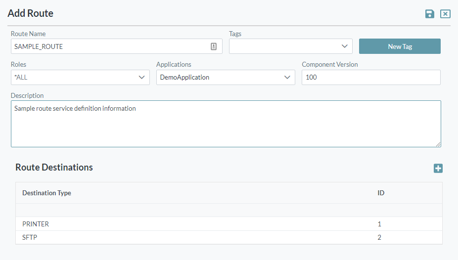 - Route Name: The name you want to assign to the route. The value for this setting can be a maximum of 40 characters (no spaces). Valid characters include numbers, letters, underscore (_) and dash (-).