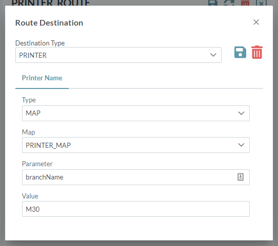 - The Map field shown above defines the route lookup map to be used (in this example, "Branch Printers").