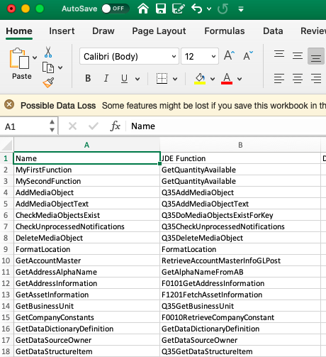 - Select the component type to be exported, for example Functions.