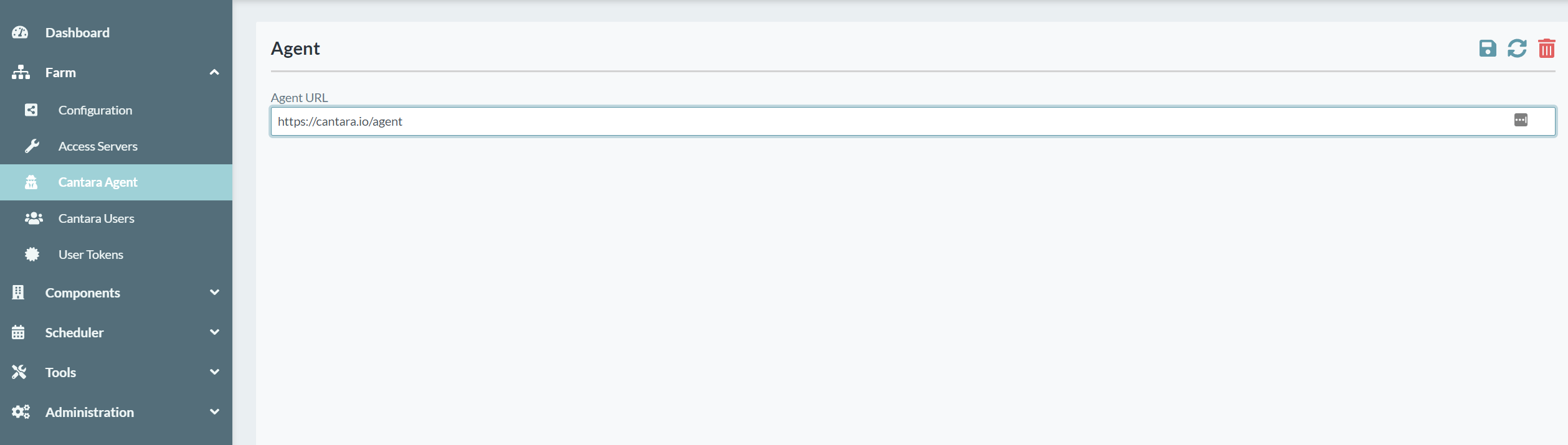 - If your deployment includes a Cantara Agent server, click on the Cantara Agent node of the navigation panel.