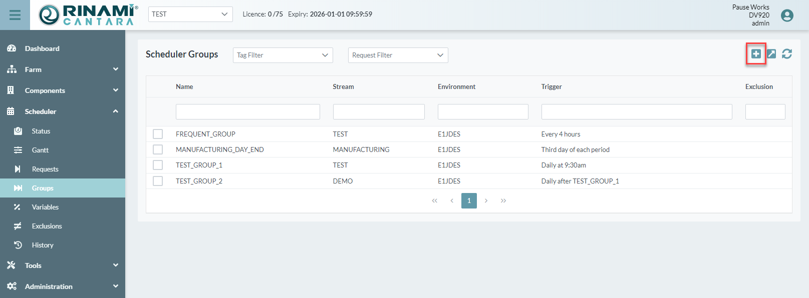 - Select the Groups node. The scheduler groups screen is displayed.