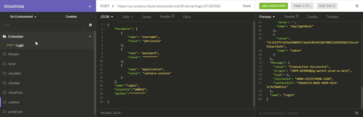 As we need a Session, we need to start with a login, then we are able to execute our Extension.
