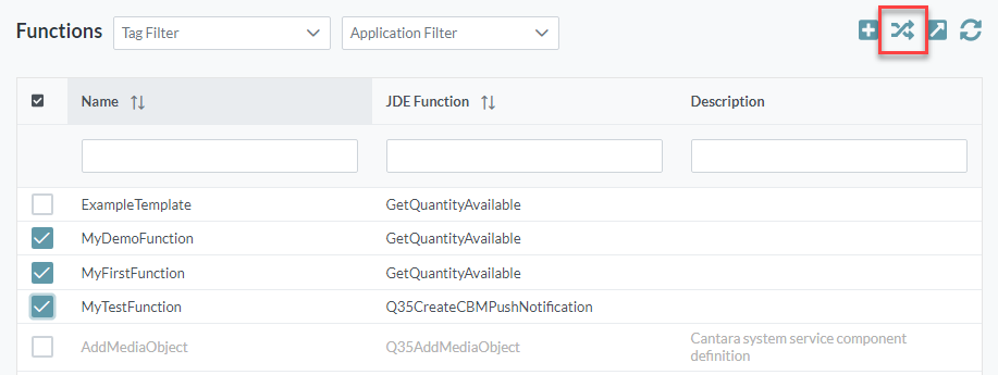 - Choose one or more functions to be transferred, using the checkboxes at the left side of the pane.