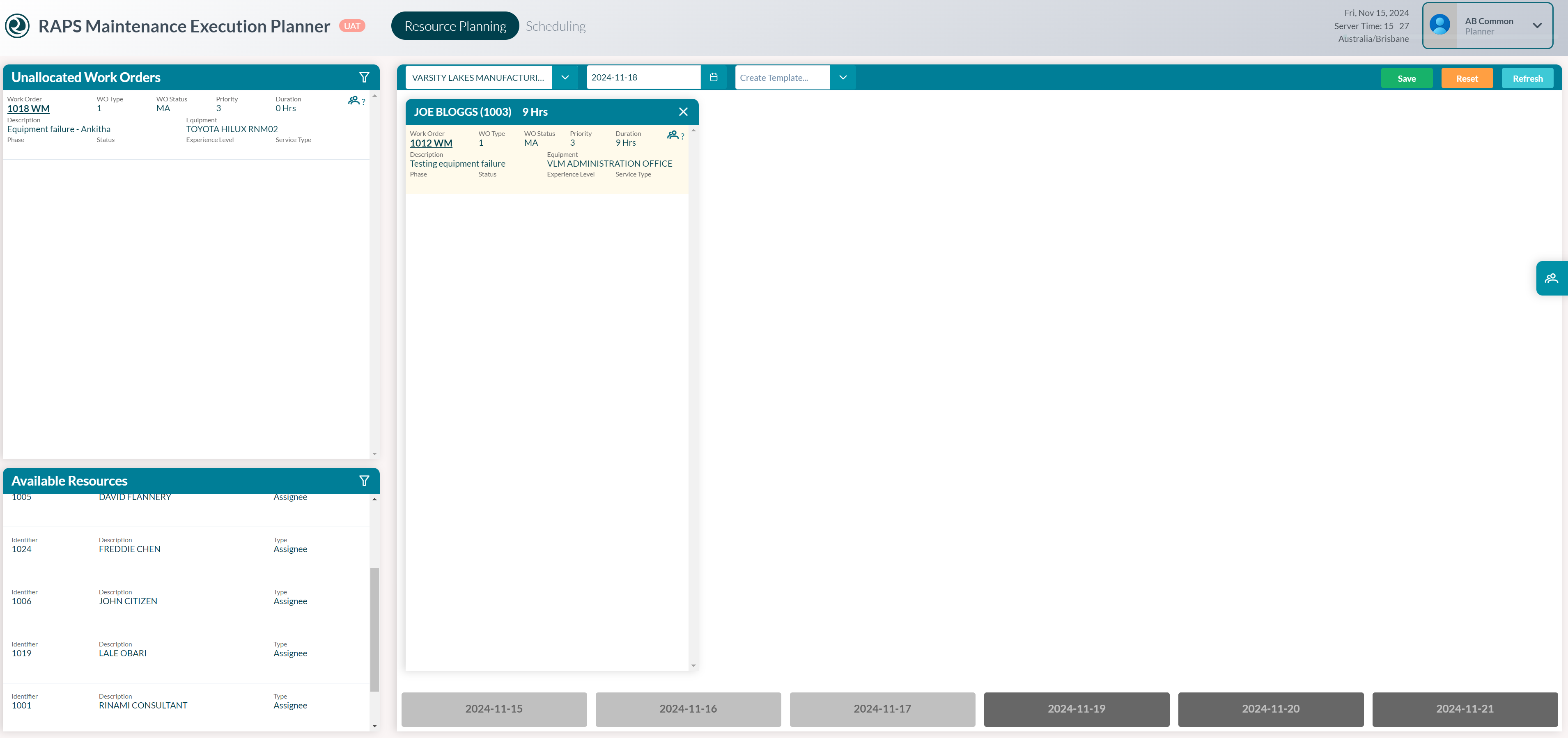 Maintenance Execution Planner can be used to allocate a work order by date.