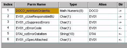 This function only requires input of the Work Order Number and will use the Work Order number to determine all the other required address number, address group, item, item group and business unit values. By default, this will use the work order Branch as the Spec/Test business unit but can be instructed to use the work order Business Unit, if required, by passing in parameter EV01_cUseResponsibleBU value as “1”.