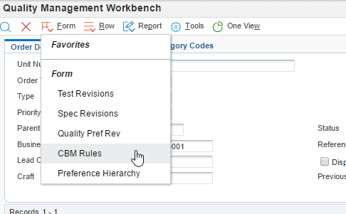 From the Quality Management Workbench take the CBM Rules Form Exit