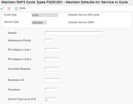 Service Type Level and other Service Type categorization values apply to all occurrences of that Service Type, within a Cycle Type. These values to not apply if the same Service Type is utilized in another Cycle Type, so ensure that these values are correct every time that Cycle Steps are added or maintained.