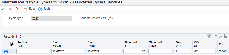 - Row Exit Associated Services to access the Associated Cycles Services form, to add/maintain Associated Services