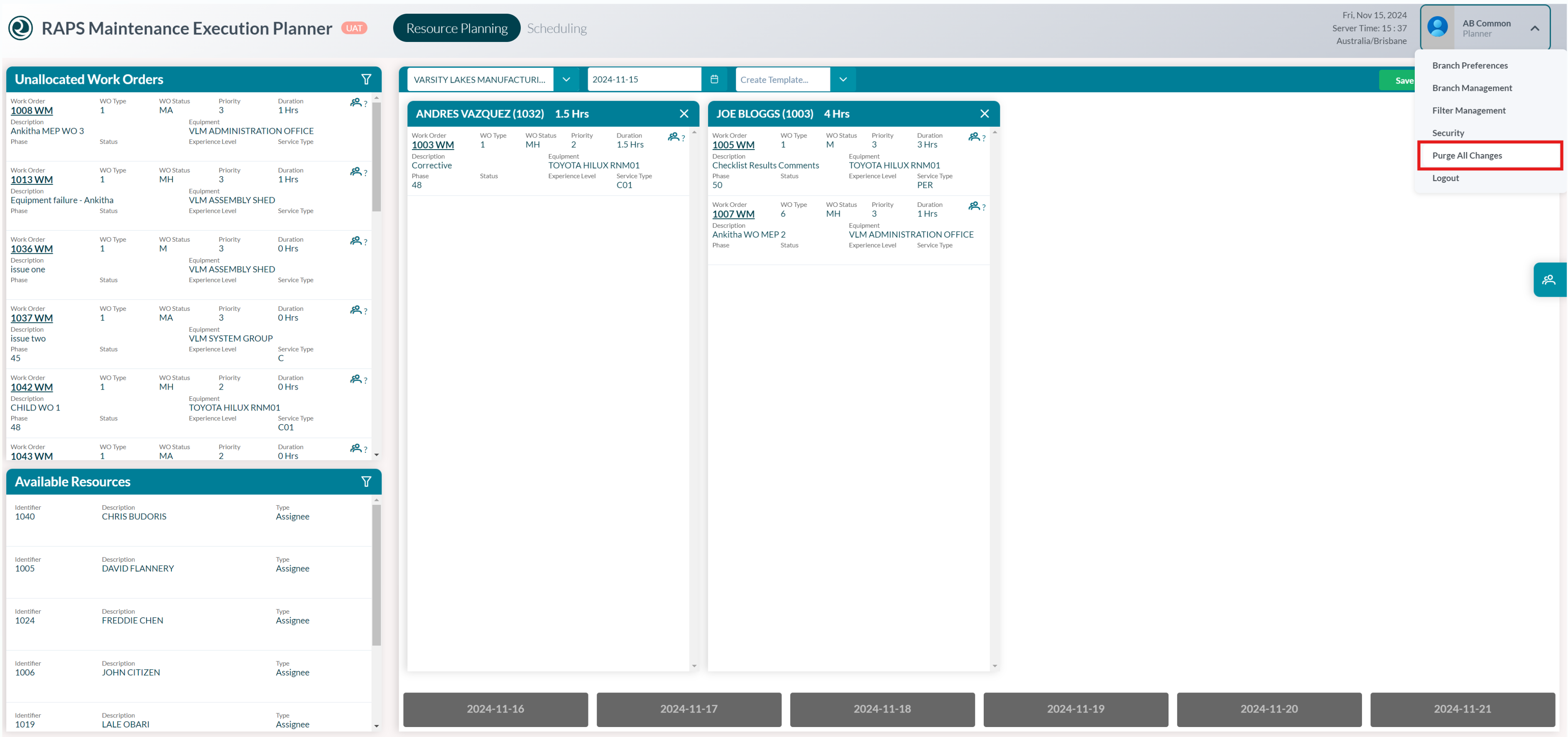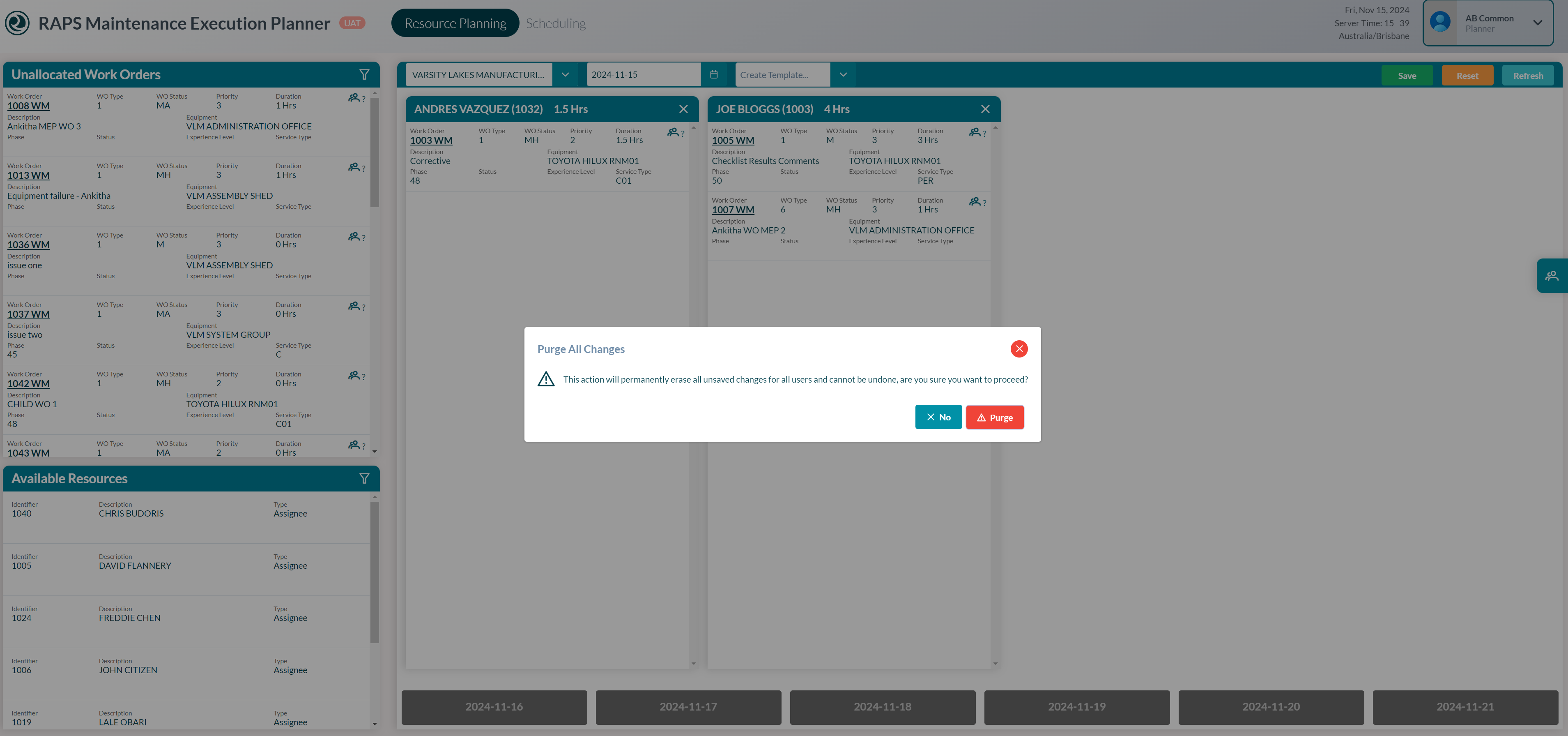 Users with the Administrator role can Purge or Reset all unsaved plans for all Users.