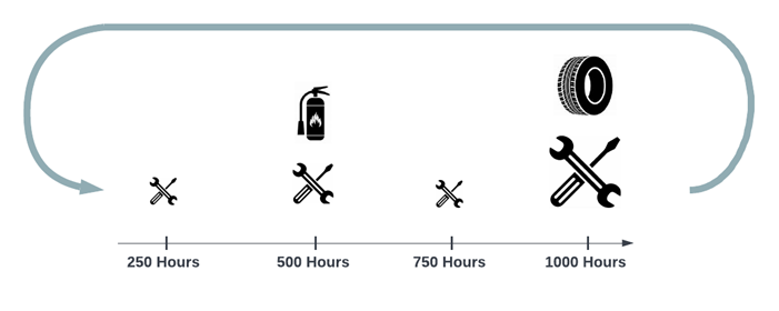 - Cycle Types with defined Cycle Steps and intervals can be applied to any asset