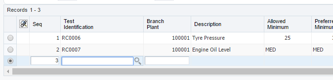 Branch/Plant is an optional field for test, specification and preference profile setup. The use of Branch/Plant must be considered prior to beginning the setup process. If the Blank branch is used, you must use Blank branch/plant for the test, specification and preference profile. If you wish to use a specific allowed range for a specific branch you must then setup a set of specification, test and quality preference profile for the specific branch individually.