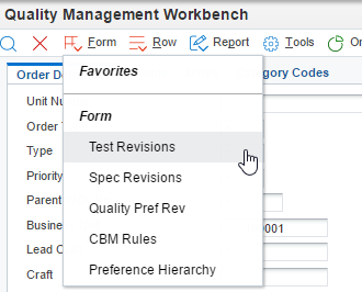 The Test Revisions application can launched from the JDE Task view menu, or it can also be accessed from within the Quality Management Workbench via the form exit “Test Revisions”