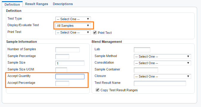 Accept Quantity – If a value is populated here then you must record at least this number of successful results for the test in order to get an overall pass result.